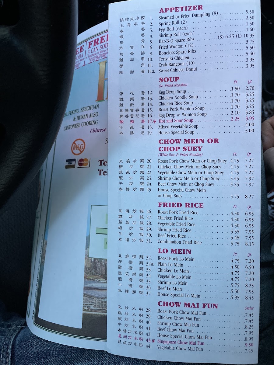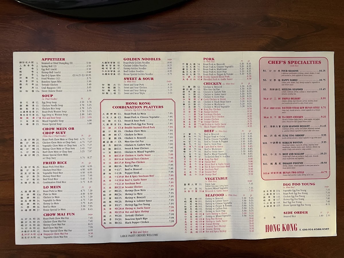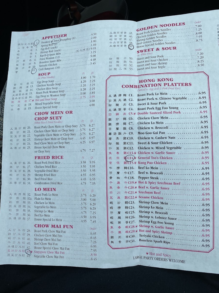 The menu at Hong Kong offers a thoughtful selection of classic Chinese dishes served in a comfortable, casual dining setting. It’s the kind of place where you can enjoy familiar favorites at any time of day—whether you're stopping by for a quick lunch, a relaxed dinner, or a convenient takeout meal.